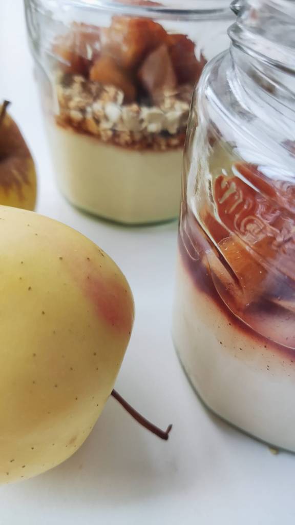 Adicione a maçã às taças e leve ao frigorífico pelo menos 4 horas antes de servir.