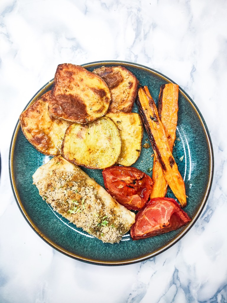 Parece uma receita elaborada, mas não é! Fiz tudo na airfryer! Costumo dar este exemplo em consulta: receitas de forno/airfryer dão-nos a liberdade de estar a fazer outras coisas enquanto cozinhamos, rentabilizamos o final do dia e ficamos com um prato que sabe a “fim de semana”!